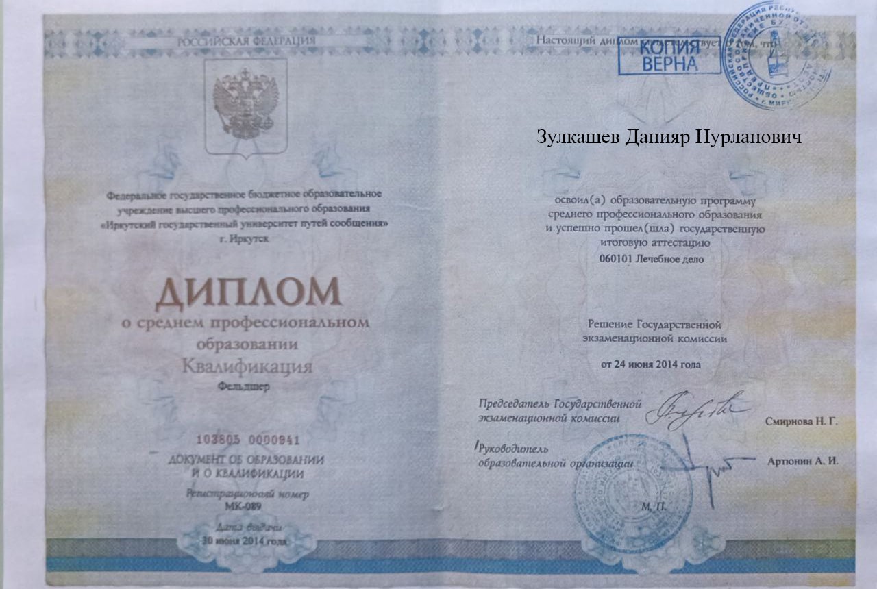 Меня зовут Зулкашев Данияр Нурланович, я — фельдшер выездной наркологической бригады в наркологической клинике "Плюс" в Урус-Мартане. Я стремлюсь помогать людям, оказывая квалифицированную медицинскую помощь в самых разных ситуациях, и верю, что каждый пациент заслуживает внимания и поддержки на пути к выздоровлению.